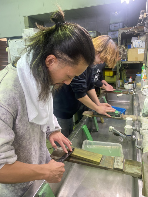 職人の方達に親切に教えていただき、みんな真剣に研いでました!